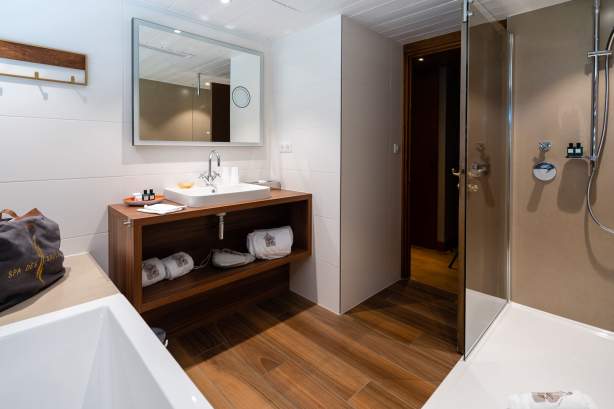 Das Zimmer Torpedo bezaubert Sie sowohl durch seine zwei Fenster und den Balkon wie auch durch die hell gehaltenen Innendekoration in Beige und Creme.