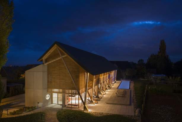 La grange revisitée devient l’écrin du Spa des Saules ; elle se fait promesse de vraie détente, elle invite à la méditation.